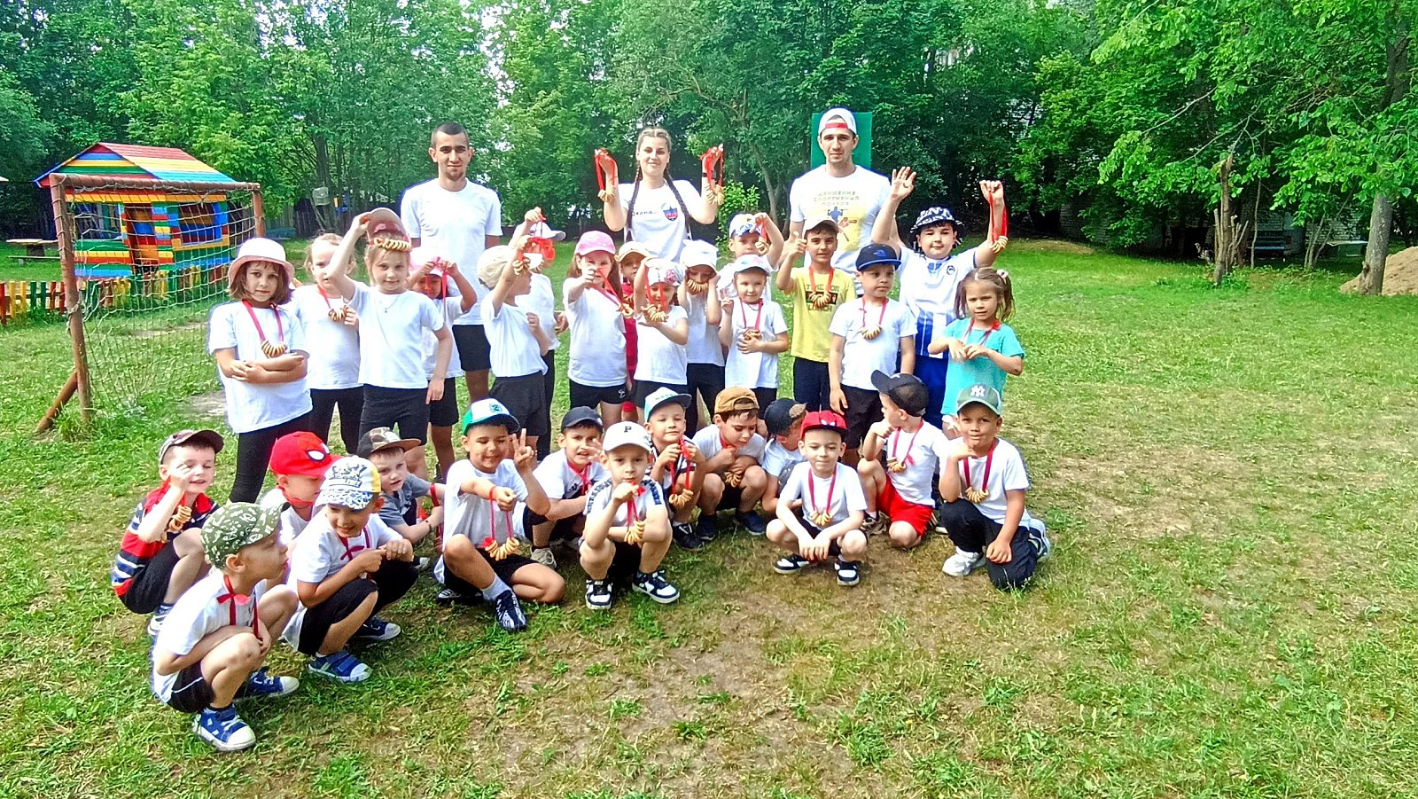 Ребята провели с детьми разминку, а затем рассказали о народных забавах и играх, в которые играли на Руси, ну и , конечно, поиграли!