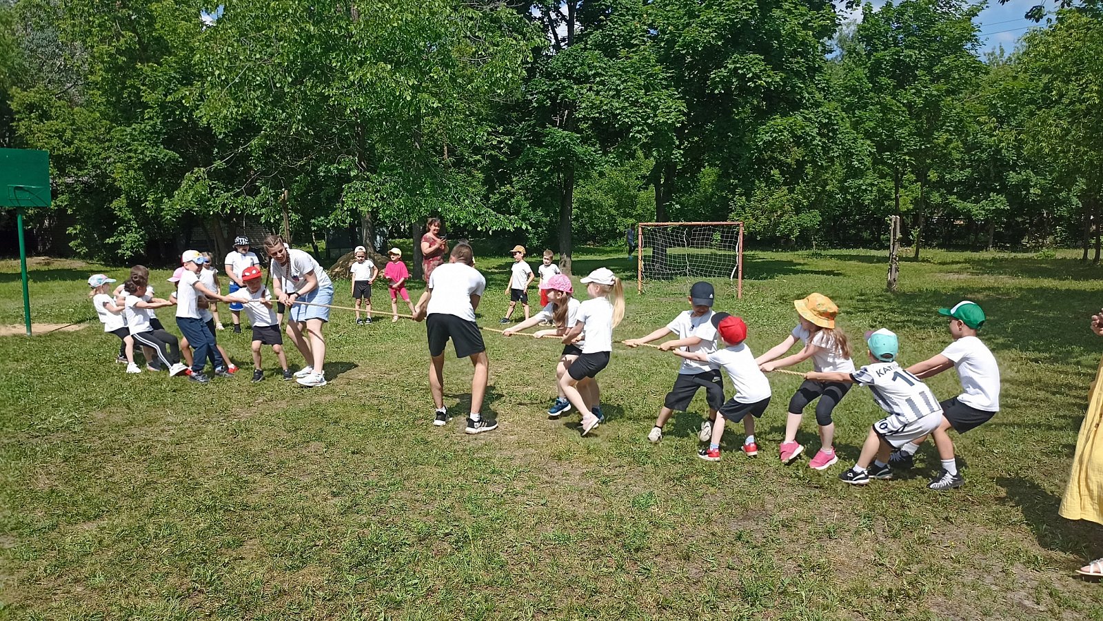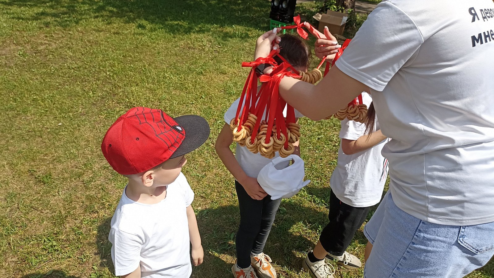 Дети с удовольствием перетягивали канат, играли в "Ручеёк", "Шишки-жёлуди-орехи", "Снять шапку". А как было приятно потом получить призы в виде вкусных баранок!