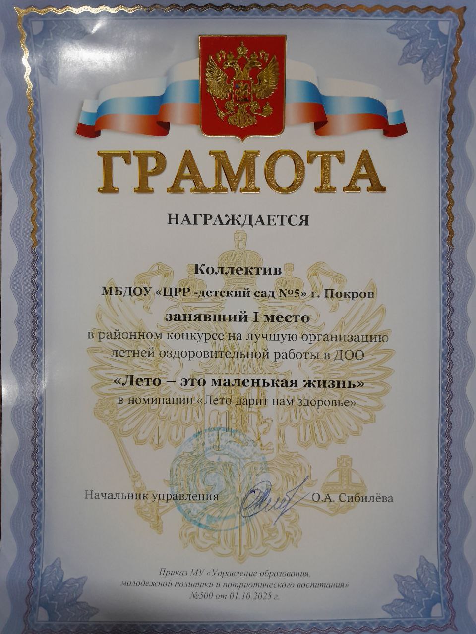 Спешим поделиться с Вами радостью. В сентябре этого года педагоги нашего детского сада участвовали в муниципальном конкурсе на лучшую организацию летней оздоровительной работы "Лето - это маленькая жизнь".